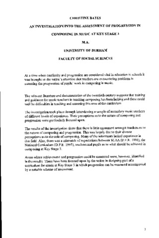 An investigation into the assessment of progression in composing in music at key stage 3