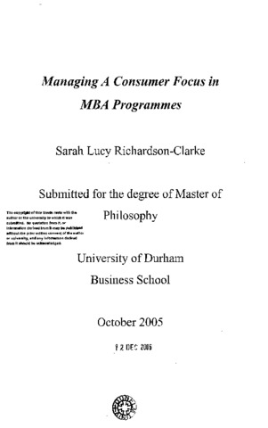 This investigation explores the pressures currently exerted on the UK higher education (HE) sector to become focused on their consumers. The conceptual framework is developed through a review of the political contingency and competitive positioning schools of strategic management, which are grounded in the concept of environmental determinism. The framework and rationale for managing a consumer focus are further developed through a review of the changes that have impacted on the UK public sector and, more specifically, the HE sector over the past two decades. The most significant changes were found to be increased pressure to manage organisations more economically, efficiently and effectively and to improve the quality of the service provided to consumers. The investigation provides prescriptions for achieving this. The different relationships that can exist between HE consumer and provider are explored, and the limitations of the consumer as a customer of HE services discussed. The roles of the HE consumer as client and citizen are also discussed. The investigation then provides the results of fieldwork undertaken at 8 UK business schools involving MBA course participants and course directors. The fieldwork, including a census survey at each institution, and a personal interview with each course director, found that the customer / client status of the consumer was acknowledged by the majority of directors, although the consumer's role as citizen was not. The study also unearthed an implementation gap between the institution's intended strategies / messages and consumers’ perceptions. The final section of the investigation provides conclusions for both theory and practice. Here, recommendations for the development and management of consumer focus in the context of HE are provided. The implications of the operating environment for institutions are also outlined, and recommendations for further research are provided.