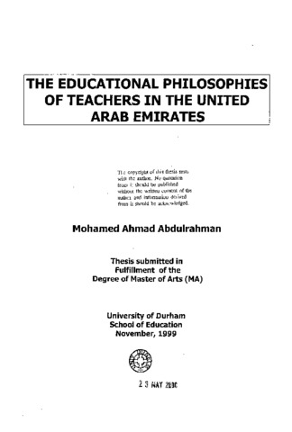 The educational philosophies of teachers in the United Arab Emirates