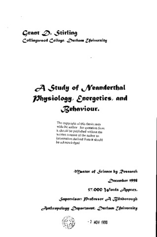 The general context of Neanderthal existence in Europe and Southwest Asia is assessed from a physiological perspective, based on studies of living populations experiencing certain roughly analogous circumstances. Various aspects of the fossil, archaeological, and paleoenvironmental records relevant to the discussion of energy balance among the Neanderthals were investigated. Within living populations exposed to cold climate, subsisting on energy deficient diets, or participating in strenuous exercise regimes, various metabolic and physiological responses are evident. These relate to an attempt to maintain energy balance under such stresses, and are mediated by the action of thyroid hormones. It is proposed that the Neanderthals, who endured similar conditions, must have adapted to a low level of circulating active thyroid hormones in the face of an energy imbalance (negative) and sacrificed linear growth (of the legs/limbs primarily) as an energy sparing mechanism, so that other more essential body functions could be maintained to enable survival. Given that the Neanderthal physique was skeletally robust and highly muscled (and that a significant degree and frequency of trauma is evident) it logical that they were engaging in very specific and stressful activity patterns. The Neanderthal physique would have prohibited certain activities but facilitated others. It is clear that modem athletes who share these attributes take part in power and speed events, involving intermittent bursts of high intensity exercise, rather than more stamina orientated ones. This information is used, in conjunction with archaeological and paleoenvironmental evidence, to develop a theory of the daily subsistence practices of the Neanderthals, involving the ambushing of game in a closed environment. Such start-stop activities in a cold environment would have had a bearing on metabolism and energy balance, but also exerted pressure on thermoregulatory mechanisms. In light of this a new theory is developed to explain the evolution of the Neanderthals' exceptional cranial capacity and morphology. The elongated and unflexed basicranium is proposed to have arisen in order to accommodate an expanded cavernous sinus at the base of the brain. This would have provided a mechanism for regulating brain temperature under oscillating periods of heavy physical exertion and rest in a cold environment. The points outlined here are made with reference to previously suggested notions of ecogeographic patterning of body morphology and differential mobility at the time of the 'transition'. Finally, the aspects of Neanderthal existence discussed are placed in a broad ecological and evolutionary context alongside the contemporaneous Early Anatomically Modem Humans (EAMH).