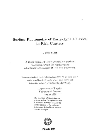 This thesis investigates the morphology of early-type galaxies in two rich clusters using 2D surface photometry. In particular, the amount of light in the 'disk' component is focussed upon, as the presence of a disk is the main morphological criterion in distinguishing between the traditional 'elliptical' and 'S0' classes. Extensive and photometric E-band CCD observations of continuous areas of the Coma and Abell 1367 clusters were obtained at the 2.5 m Isaac Newton telescope, La Palma during March 1994. A subset of this large data-set has been used in this study, comprising a magnitude-limited (to R = 15.6) sample of 153 galaxies in the two clusters. Surface photometry measurements, including surface brightness profiles and isophotal shapes, have been made for the sample. Atmospheric seeing is a major problem when measuring light profiles at the distance of Coma from ground-based telescopes. Typical seeing at La Palma (FWHM~1.2") is a significant fraction of the effective radius of many Coma/Abell 1367 galaxies (r(_e)~3" for small ellipticals). An iterative algorithm was developed to deconvolve the effects of seeing from surface brightness profiles. The result of the algorithm is to extend the range of useful surface photometry inwards to within 2 times the FWHM. In order to parametrise the surface brightness profiles and discriminate between different profile-types, further software was developed to fit one- and two-component model profiles to the seeing-corrected data. The following parameters were measured and tabulated for each of the 153 galaxies: total magnitude M(_t); half-light parameters r (_1/2) and (μ)(_1/2); SB at half-light radius μ(r(_1/2)); photometric diameter D(_19.23) (equivalent to D(_n)); ellipticity at R = 21.5 isophote ϵ(_21.5); averaged isophote high-order terms (C(_3)), (S(_3)), (C(_4)) and (S(_4)); effective radii and surface brightnesses of 5 single power-law r(^1)(_n) models, r"e and (^)"^ (n = 1,2,3,4,5); best-fitting power-law index n; bulge effective radii and surface brightnesses from the two-component fit and (/^) disk effective parameters r'^e and {nY^] and disk-to-bulge luminosity ratio DjB. The measured parameters have been used to investigate various aspects of early-type galaxy morphology. The conclusions are outlined below. Firstly, a two-component r? plus exponential model is a better fit to most galaxies than a single component law fit. Secondly, the traditional division of early-type galaxies into 'elliptical' and 'SO' classes is severely biased by the viewing angle. In fact, it appears that early-type galaxies comprise a population of objects with smoothly varying bulge-to-disk ratio - although a few ellipticals (less than 13%) do not appear to have a exponential component. Finally, there is a general correlation (with much scatter) between the size and the profile shapes of early-type galaxies. The interpretation is that smaller galaxies are more disk-dominated than larger galaxies, which can be linked to the merging process in rich clusters. [brace not closed]