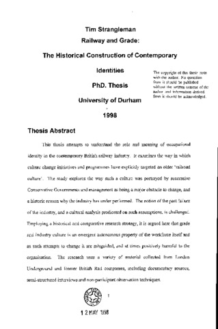 This thesis attempts to understand the role and meaning of occupational identity in the contemporary British railway industry. It examines the way in which culture change initiatives and programmes have explicitly targeted an older 'railroad culture'. The study explores the way such a culture was portrayed by successive Conservative Governments and management as being a major obstacle to change, and a historic reason why the industry has under performed. The notion of the past failure of the industry, and a cultural analysis predicated on such assumptions, is challenged. Employing a historical and comparative research strategy, it is argued here that grade and industry culture is an emergent autonomous property of the workforce itself and as such attempts to change it are misguided, and at times positively harmful to the organisation. The research uses a variety of material collected from London Underground and former British Rail companies, including documentary sources, semi-structured interviews and non-participant observation techniques.