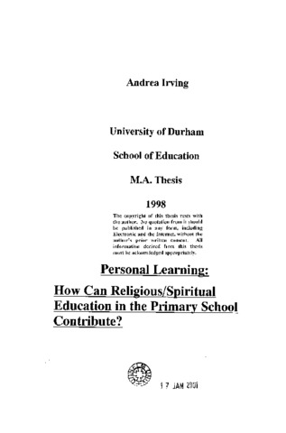 Personal learning: how can religious/spiritual education in the primary school contribute?
