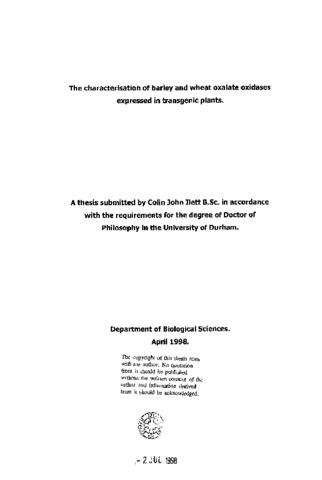 The characterisation of barley and wheat oxalate oxidases expressed in transgenic plants