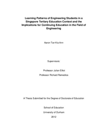 Learning Patterns of Engineering Students in a Singapore Tertiary Education Context and the Implications for Continuing Education in the Field of Engineering