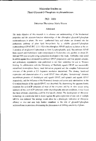 Molecular studies on plant glycerol-s-phosphate acyltransferases