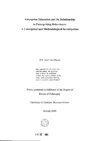 Enterprise education is defined by some educators as a distinctive approach to teaching with the aims of improving motivation to learning and enhancing the development of enterprising behaviours in young people (e.g. Bridges, 1992; Gibb, 1993; Harris, 1993a). However, after two decades of development, there remains a lack of empirical support to demonstrate its effectiveness, or otherwise, in achieving its aims. This is due to the problem of conceptual confusion with the political rhetoric of business imperatives and a lack of a unitary definition. Furthermore, there is a problem of finding an appropriate methodology to investigate the holistic nature of the phenomenon. In order to investigate the effectiveness of enterprise education, therefore, the problem of conceptual confusion needs to be addressed before the key concepts can be operationlised and a potential methodology explored. The Durham University Business School's model of enterprising teaching is chosen for this purpose since the relationship between 'enterprising teaching' and the development of 'enterprising behaviours' was clearly laid out in Gibb's paper (1993) and has been shared by many other models of enterprise education. Hence, the objective of this thesis is to explore the meaning of 'enterprising teaching modes' and 'enterprising behaviours' among teachers with the main focus on seeking firstly, operational definitions of the two key concepts; and secondly, an appropriate methodology to measure these concepts. An exploratory study based upon the discourse interview research method was chosen for its strength of investigating the key concepts in depth. Findings from the ten intensive case studies suggest that the DUBS' concepts were not naturally associated with political rhetoric. 'Enterprising teaching modes' were perceived to be effective in promoting a deeper level of learning, although some modes were found to be value- laden and ambiguous. When these problematic modes were removed, the concept potentially constituted an adequate construct for distinguishing an enterprising teaching tendency from a didactic one. 'Enterprising behaviours' were also perceived to constitute a unique behavioural construct. A behavioural rating methodology was demonstrated to be an appropriate measurement instrument for both concepts. Inferences were also made which suggest that enterprising teaching modes might cause the development of enterprising behaviours in students. The current research results have arguably provided a solid conceptual and methodological foundation for further empirical investigation to follow.