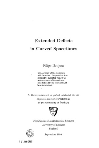 This Thesis is concerned with three particular aspects of extended cosmic strings and domain walls in cosmology: their dynamics, gravitation and interaction with a black hole. In Chapter 3, we study the dynamics of an abelian-Higgs cosmic string. We find its equations of motion from an effective action and compare, for three test trajectories, the resulting motion with that observed in the Nambu-Gotō approximation. We also present a general argument showing that the corrected motion of any string is generically antirigid. We pursue the investigation of the dynamics of topological defects in Chapter 5, where we find (from integrability conditions rather than an effective action) the effective equations governing the motion of a gravitating curved domain wall. In Chapter 4 we investigate the spacetime of a gravitating domain wall in a theory with a general potential V(ɸ). We show that, depending on the gravitational coupling e of the scalar ɸ, all nontrivial solutions fall into two categories interpretable as describing respectively domain wall and false vacuum-de Sitter solutions. Wall solutions cannot exist beyond a value (^4)(_3)ɛmax, and vacuum-de Sitter solutions are unstable to decaying into wall solutions below ɛmax at ɛmax we observe a phase transition between the two types of solution. We finally specialize for the Goldstone and sine-Gordon potentials. In Chapter 6 we consider a Nielsen-Olesen vortex whose axis passes through the centre of an extremal Reissner-Nordstr0m black hole. We examine in particular the existence of piercing and expelled solutions (where the string respectively does and does not penetrate the black hole's horizon) and determine that while thin strings penetrate the horizon — and therefore can be genuinely called hair — thick strings are expelled; the two kinds of solution are separated by a phase transition.