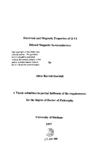 The electrical and magnetic properties of MOVPE grown epitaxial layers of Hg(_1-x)Mn(_x)Te layers has been investigated using a number of techniques. The samples have been grown by the Inter Diffused Multilayer Process, (IMP) on (100) semi insulating GaAs substrates with ZnTe and CdTe buffer layers. The samples have been shown to show a number of phenomena nopt observed in the bulk material, such as an anomaly in the resistivity, rnagnetoresistance related to the intrinsic magnetism of the material, and saturation of the room temperature magnetisation. In general the samples are of a highly compensated nature with the value of |R(_H)e|(^-1) varying between l0(^14) and 5xI0(^17) cm(^-3) at 20K, the Hall mobilities varying between 8 and 3.5x10(^5) cm(^2)V(^-1)s(^-1) at 20K. Magnetically, the samples generally show a paramagnetic signal that is swamped by the diamagnetic background of the substrate and buffer layers. The paramagnetisrn can be well modelled using a Curie Weiss fit. A number of the samples show a saturation in the magnetisation, which, has been explained via the use of vacancy ordering within MnTe regions in the sample. The susceptibility of the samples has been investigated using a Faraday balance system, and this data has been fitted using; a cluster model for Mn ions within the sample. The photomagnetisation of Cd(_0.9)Mn(_0.1)Te:In has been investigated using a faraday balance system, and modelled using the work of Dietl and Sample, to calculate the number of polarons that had formed on donors in the sample, ΔN(_D)(^MAG) = 1.28x10(^15)cm(^-3). The number of donors in the sample has been measured by means of the Hall effect, ΔN(_D)(^ELEC) = 1.92x10(^15)cm(^-3), and this value compared to that obtained from the model. We have proposed a model to explain this discrepancy based on the concept of band tails in the impurity band.