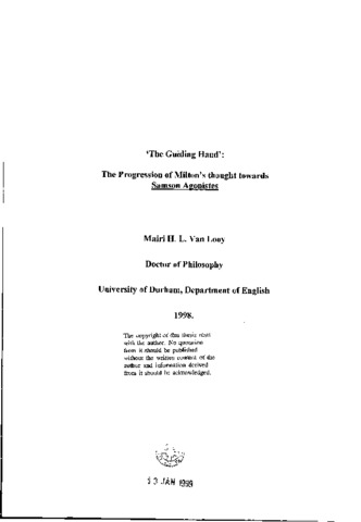 'The guiding hand': the progression of Milton’s thought towards Samson Agonistes