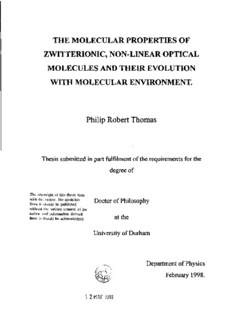 The molecular properties of zwitterionic, non-linear optical molecules and their evolution with molecular environment.
