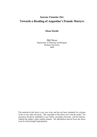 Sanctae Famulae Dei: Towards a Reading of Augustine's Female Martyrs