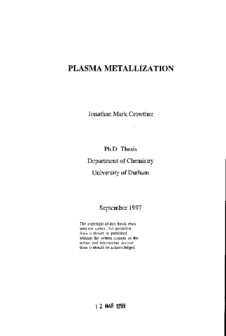 Many methods are currently used for the production of thin metal films. However, all of these have drawbacks associated with them, for example the need for UHV conditions, high temperatures, exotic metal precursors, or the inability to coat complex shaped objects. Reduction of supported metal salts by non-isothermal plasma treatment does not suffer from these drawbacks. In order to produce and analyse metal films before they become contaminated, a plasma chamber which could be attached directly to a UHV chamber with XPS capability was designed and built. This allowed plasma treatment of supported metal salts and surface analysis by XPS to be performed without exposure of the metal film to the atmosphere. Non-equilibrium plasma treatment of Nylon 66 supported gold(III) chloride using hydrogen as the feed gas resulted in a 95% pure gold film, the remaining 5% of the film being carbon. If argon or helium were used as the feed gases during plasma treatment the resultant gold films were 100% pure. Some degree of surface contamination of the films due to plasma treatment was observed but was easily removed by argon ion cleaning. Hydrogen plasma reduction of glass supported silver (I) nitrate and palladium(n) acetate films reveals that this metallization technique is applicable to a wide variety of metal salts and supports, and has also shown the ability of plasma reduction to retain the complex 'fern-like' structures seen for spin coated silver(I) nitrate layers. Some metal salts are susceptible to decomposition by X-rays. The reduction of Nylon 66 supported gold(III) chloride films by soft X-rays to produce nanoscopic gold particles has been studied. The spontaneous reduction of these X-ray irradiated supported gold(III) chloride films on exposure to the atmosphere to produce gold rich metallic films has also been reported.