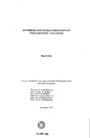 Synthesis and characterisation of poly(arylene vinylene)s
