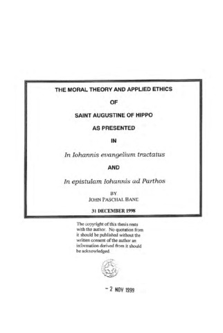 The moral theory and applied ethics of saint Augustine of hippo as presented in in Iohannis evangelium tractatus and in epistulam Iohannis ad parthos