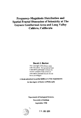 Frequency-magnitude distribution and spatial fractal dimension of seismicity at the geysers geothermal area and long valley caldera, California