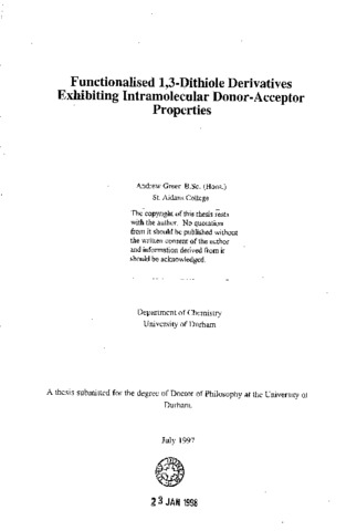 A variety of functionalised 1,3-dithiole derived donor-π-acceptor systems linked by an alkenic bridge have been synthesised, the acceptor units being dicyanomethylene and cyanoimine. They exhibit intramolecular electron transfer from the electron donor moiety to the electron acceptor moiety. The presence of electron donating substituents on the 1,3-dithiole ring increases the degree of overall charge transfer; this process has been studied by UV-VIS spectroscopy and X-ray crystallography. The latter technique indicates a significant amount of intramolecular electron transfer in the ground state. A selection of functionalised donor-π-acceptor systems linked by an anthracene spacer unit have been prepared which possess greater donor-Ti-acceptor characteristics; however, the degree of electron transfer measured by X-ray crystallography of one derivative appears to be less. The 1,3-diselenole donor unit has also been utilised as an electron donor unit in donor-π-acceptor systems however, for all derivatives the diselenole unit is inferior to the 1,3- dithiole unit. The linking of a 1,3-dithiole donor unit to two acceptor units produces charge transfer bands that are red shifted compared to the parent donor-π-acceptor systems. Exchange of one acceptor unit for a donor unit leads to a similar red shift. Solution electrochemical studies, non-linear optical properties, ultra-fast spectroscopy and solvatochromic analysis have been performed on a range of systems.