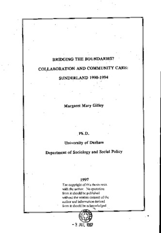 Bridging the boundaries? collaboration and community care: Sunderland 1990-1994