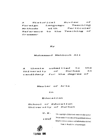 A historical review of foreign language teaching methods with particular reference to the teaching of grammar