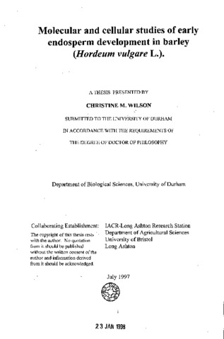 Molecular and cellular studies of early endosperm development in barley (Hordeum vulgare L.)