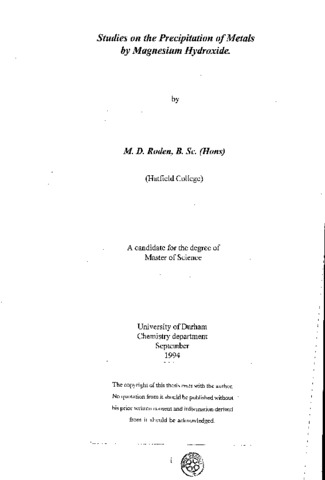 Studies on the precipitation of metals by magnesium hydroxide