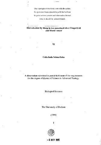 Diet selection by sheep in two moorland sites: chapel fell and Monk's moor.