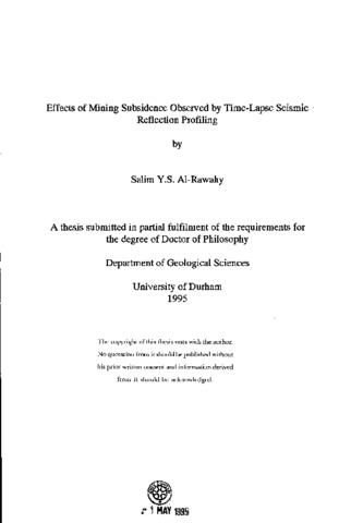 Extracting coal from underground mineworkings causes the overlying rocks to subside with associated changes in the stress regime. The aim of the study reported here was to apply the surface seismic reflection method to study the effect of subsidence on seismic velocity. Two sets of time-lapse surveys were carried out over two longwall mining panels in the Selby Coalfield. Seismic lines were profiled parallel and perpendicular to adjacent panels H45 and H46, respectively. A total of twenty-one repeated surveys were carried out along the two lines over a period of three years. The effect monitored was due to mining in the Bamsley Seam, at 550 m depth. As mining progressed, the traveltime of a strong reflection event from an anhydrite bed at 150 m depth was measured after processing the data with standard techniques. An overall increase in traveltime of about 4 % was observed. The progressive increase in traveltime over panel H45 correlated well with empirical calculations of differential subsidence between the surface and the anhydrite. However, the magnitude of the change must principally be accounted for by a decrease in seismic velocity, associated with a reduction in the vertical effective stress. Although the traveltime over panel H46 was also found to increase, and to correlate quite well with die expected differential subsidence, the agreement was less good along this transverse profile. This is attributed to asymmetric subsidence effects because the ground on the SW side of the panel had already been worked by panel H45, but the ground on the NE side was unworked. At the time of each seismic survey across panel H46, the profile was also levelled, and it was found that surface subsidence values along the profile increased towards panel H45. As most of the subsidence caused by mining panel H45 would have been completed by the time the H46 profile was surveyed, the effect must be at least partly attributed to asymmetric subsidence due to panel H46. Where the ground had been weakened by subsidence due to mining H45, near-total subsidence from mining H46 took place rapidly; but in the previously unworked ground on the NE side of panel H46, the residual subsidence was presumably delayed by competent strata in the overburden. Further work is needed to confirm whether this explanation is correct.