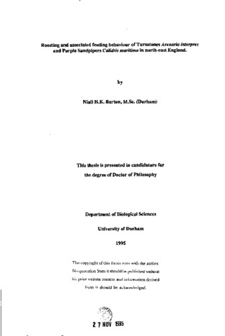 Roosting and associated feeding behaviour of turnstones Arenaria Interpres and purple sandpipers Calidris maritima in north-east England