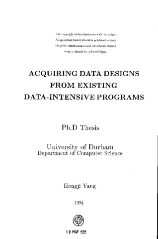 The problem area addressed in this thesis is extraction of a data design from existing data intensive program code. The purpose of this is to help a software maintainer to understand a software system more easily because a view of a software system at a high abstraction level can be obtained. Acquiring a data design from existing data intensive program code is an important part of reverse engineering in software maintenance. A large proportion of software systems currently needing maintenance is data intensive. The research results in this thesis can be directly used in a reverse engineering tool. A method has been developed for acquiring data designs from existing data intensive programs, COBOL programs in particular. Program transformation is used as the main tool. Abstraction techniques and the method of crossing levels of abstraction are also studied for acquiring data designs. A prototype system has been implemented based on the method developed. This involved implementing a number of program transformations for data abstraction, and thus contributing to the production of a tool. Several case studies, including one case study using a real program with 7000 Hues of source code, are presented. The experiment results show that the Entity-Relationship Attribute Diagrams derived from the prototype can represent the data designs of the original data intensive programs. The original contribution of the thesis is that the approach presented in this thesis can identify and extract data relationships from the existing code by combining analysis of data with analysis of code. The approach is believed to be able to provide better capabilities than other work in the field. The method has indicated that acquiring a data design from existing data intensive program code by program transformation with human assistance is an effective method in software maintenance. Future work is suggested at the end of the thesis including extending the method to build an industrial strength tool.