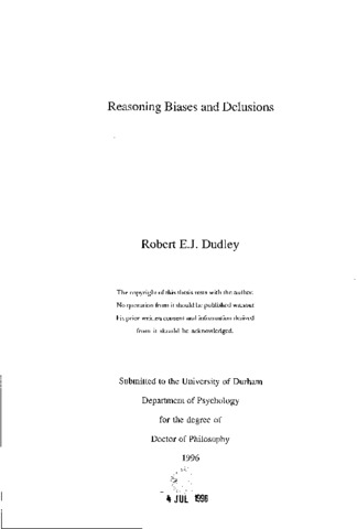 We know little about the formation and maintenance of delusional beliefs. Two main approaches have dominated the scant literature. These seek to account for delusions as primarily disturbances of perception (Maher, 1988) or as differences in reasoning (Garety, 1991). The concern here is with reasoning biases. Garety and Hemsley (1994) have proposed a model in which delusions’ are caused by a "failure to utilise previously acquired information". This leads to people with delusions exhibiting characteristic information processing biases in reasoning (i.e. hastiness and overconfidence). The aim of the present research was to compare the performance on reasoning tasks of people with delusions with that of psychiatric and normal control subjects in order to examine whether these subjects exhibited die proposed characteristics of delusional thought. The reasoning tasks were manipulated in both the form of reasoning (deductive, probabilistic etc.) and in content to examine the effect of reasoning with different types of material (neutral or emotional).The results of the six studies demonstrated both abnormal and normal reasoning by people with delusions. These people were no more confident than control subjects in the certainty of the correctness of their answers (Experiment 2). Nor were people with delusions excessively swayed by information currently present in the environment (Experiments 1 and 5) which is a supposed consequence of the inability to use past experience. However, people with delusions were shown to be hasty in their decisions relative to comparison subjects (Experiment 5). This hastiness was further exaggerated when the material reasoned with was self referent in content (Experiment 6). In addition, people with delusions were significantly poorer at reasoning on one of the most researched paradigms the Wason Selection Task (Experiments 3 and 4). The relevance of these findings for theories of delusions was examined.