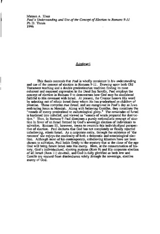 Paul’s understanding and use of the concept of election in Romans 9-11