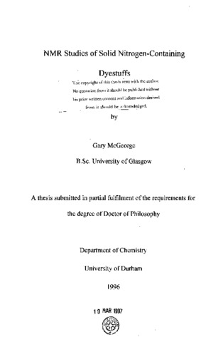 This thesis is concerned with the structural analysis of dyestuffs in their natural solid state by the application of solid-state nuclear magnetic resonance. These dysetuffs are all derived from the phenylazobenzene group, but tautomerism can produce structural changes, which have so far been uncharacterised in the solid-state for many of the dyestuffs currently under investigation. The information obtainable from (^13)C and (^15)N chemical shifts, both isotropic and anisotropic will be applied in this structure determination. Under magic-angle spinning the anisotropic nature of solid-state interactions is partially averaged or removed. The rotational resonance technique will be presented, which reintroduces the homonuclear dipolar interaction allowing dipolar coupling constants to be measured. Second-order effects arising from the (^14)N quadrupole interaction broaden spin-1/2 lines (RDC) in such a manner that bond lengths can be determined. This RDC analysis will be applied to a series of hydrazone structures to determine the (^15)N-(^14)N bond length within the hydrazone linkage. Finally, the two-dimensional magic-angle turning experiment will be discussed and applied to both the (13)C and (^15)N nuclei for a range of dyestuffs to show that accurate shielding tensor information can be obtained from large molecules.