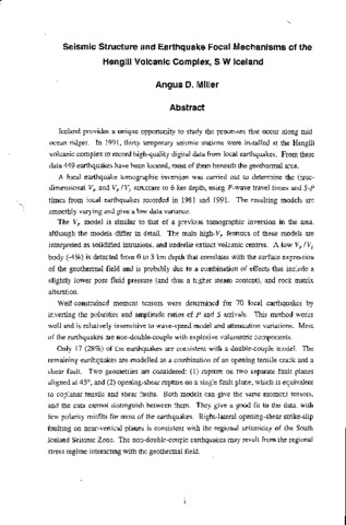 Seismic structure and earthquake focal mechanisms of the Hengill volcanic complex, S W Iceland