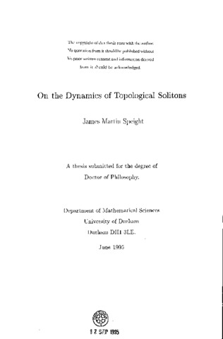 This thesis investigates the dynamics of lump-like objects in non-integrable field theories, whose stability is due to topological considerations. The work concerns three different low dimensional ((1 + 1)- and (2 + l)-dimensional) systems and addresses the questions of how the topology and metric structure of physical space, the quantum mechanics of the basic field quanta and intersoliton interactions affect soliton dynamics. In chapter 2 a sine-Gordon system in discrete space, but with continuous time, is presented. This has some novel features, namely a topological lower bound on the energy of a kink and an explicit static kink which saturates this bound. Kink dynamics in this model is studied using a geodesic approximation which, on comparison with numerical simulations, is found to work well for moderately low kink speeds. At higher speeds the dynamics becomes significantly dissipative, and the approximation fails. Some of the dissipative phenomena observed are explained by means of a dispersion relation for phonons on the spatial lattice. Chapter 3 goes on to quantize the kink sector of this model. A quantum induced potential called the kink Casimir energy is computed numerically in the weak coupling approximation by quantizing the lattice phonons. The effect of this potential on classical kink dynamics is discussed. Chapter 4 presents a study of the low-energy dynamics of a CP(^1) lump on the two-sphere in the geodesic approximation. By considering the isometry group inherited from globalsymmetries of the model, the structure of the induced metric on the unit-charge moduli space is so restricted that the metric can be calculated explicitly. Some totally geodesic submanifolds are found, and the qualitative features of motion on these described. The moduli space is found to be geodesically incomplete. Finally, chapter 5 contains an analysis of long range intervortex forces in the abelian Higgs model, a massive field theory, extending a point source. approximation previously only used in massless theories. The static intervortex potential is rederived from a new viewpoint and used to model type II vortex scattering. Velocity dependent forces are then calculated, providing a model of critical vortex scattering, and leading to a conjecture for the analytic asymptotic form of the metric on the two-vortex moduli space.