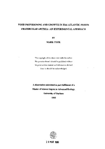 Food provisioning and growth in the Atlantic puffin fratercular Arctica: an experimental approach