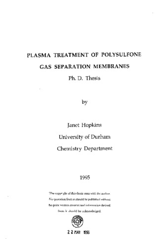 The chemical and topographical nature of a polymer surface can be changed by non-equilibrium glow discharge treatment. Surface modification of polysulfone and polyethersulfone was examined using a variety of plasma treatments at a fixed power, pressure and treatment time. The modification observed was found to be dependent upon the type of feed gas employed. Tetrafluoromethane plasmas fluorinate polymer surfaces. The influence of polymeric structure on the extent of modification was examined. Phenyl ring containing polymers experienced a greater extent of modification compared to saturated polymers. The extent of modification is dependent upon both the fluorination mechanism and the surface affinity. Plasmas contain a variety of species accompanied by an electromagnetic spectrum. The role of vacuum ultraviolet radiation in a plasma was investigated as a function of feed gas (argon, krypton, xenon and oxygen) on polyethylene and polystyrene, in an oxygen atmosphere. The xenon vacuum ultraviolet treatment gave rise to the greatest oxidation whilst the O(_2) vacuum ultraviolet treatment was found to result in the least oxidation. The activation mechanisms varied with the feed gas chosen for the experiment. Non-equilibrium glow discharge treatment can alter the transport properties of gases permeating through an asymmetric polysulfone membrane. The selectivity and permeability alter as a function of the treatment. The deposition of a methane plasma polymer onto the surface of the membrane resulted in an increase in the gas flux. Similarly CF(_4) plasma treatment also gave rise to an increase in the gas flux. The deposition of a methane plasma polymer followed by a CF(_4) plasma treatment resulted in a decrease in gas flux and a small increase in the oxygen/nitrogen selectivity.