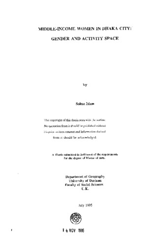 Middle-income women in Dhaka city: gender and activity space