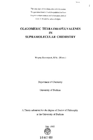 A range of highly ordered dendritic and oligomeric macromolecules, functionalised with tetrathiafulvalene (TTF) derivatives as a redox-active sub-unit were assembled. In particular, the first dendritic macromolecules incorporating TTF were constructed by the reaction of poly-acid chlorides and alcohol functionalities. Electrochemical techniques showed the novel redox-superstructures to be efficient π-electron donors that are able to undergo two reversible, multi-electron-on oxidations. The TTF-units were established to be acting independently, and the extent to which the redox groups could be oxidised was evaluated. UV studies demonstrated the redox- assemblies to be capable of forming charge-transfer complexes m solution and showed potential for the formation of conducting charge-transfer complexes. Preliminary studies showed the precursors to these compounds to be suitable for use as electrochemical detectors for dopamine. Structural variation of the core units increased the air and thermal stability of the dendritic materials, whilst retaining the characteristics of the multi-redox system. These systems formed stable aggregates of the radical cation and afforded conducting charge- transfer complexes with TCNQ. The new precursors to multi-TTF systems were then used in attempts to impart redox characteristics on [2]pseudorotaxanes and rotaxanes. Preliminary attempts were made to assemble multi-TTF systems using a TTF derivative as a core and at the periphery.