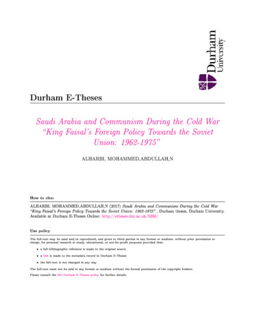Saudi Arabia and Communism During the Cold War “King Faisal’s Foreign Policy Towards the Soviet Union: 1962-1975”