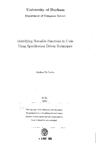 The work described in this thesis addresses the field of software reuse. Software reuse is widely considered as a way to increase the productivity and improve the quality and reliability of new software systems. Identifying, extracting and reengineering software. components which implement abstractions within existing systems is a promising cost-effective way to create reusable assets. Such a process is referred to as reuse reengineering. A reference paradigm has been defined within the RE(^2) project which decomposes a reuse reengineering process in five sequential phases. In particular, the first phase of the reference paradigm, called Candidature phase, is concerned with the analysis of source code for the identification of software components implementing abstractions and which are therefore candidate to be reused. Different candidature criteria exist for the identification of reuse-candidate software components. They can be classified in structural methods (based on structural properties of the software) and specification driven methods (that search for software components implementing a given specification).In this thesis a new specification driven candidature criterion for the identification and the extraction of code fragments implementing functional abstractions is presented. The method is driven by a formal specification of the function to be isolated (given in terms of a precondition and a post condition) and is based on the theoretical frameworks of program slicing and symbolic execution. Symbolic execution and theorem proving techniques are used to map the specification of the functional abstractions onto a slicing criterion. Once the slicing criterion has been identified the slice is isolated using algorithms based on dependence graphs. The method has been specialised for programs written in the C language. Both symbolic execution and program slicing are performed by exploiting the Combined C Graph (CCG), a fine-grained dependence based program representation that can be used for several software maintenance tasks.
