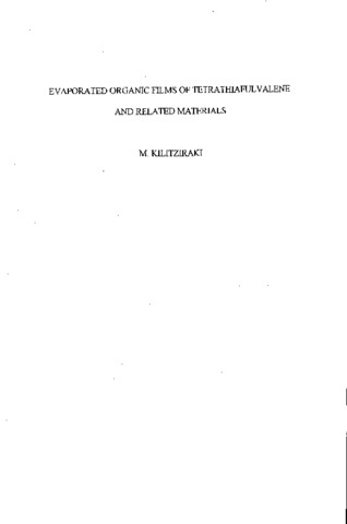 This thesis describes the design, construction and application of a novel vacuum system for the preparation of thin films of organic charge-transfer compounds. The method of thermal evaporation was used for four materials: tetrathiafulvalene (TTF) and three of its derivatives, dimethyltetrathiafiilvalene (DiMe-TTF), trimethyltetrathiafiilvalene (TriMe-TTF) and bis(ethylenedithio)tetrathiafiilvalene (BEDT-TTF). The resulting thin layers were characterised using optical and electron microscopy, infrared/visible spectroscopy and dc conductivity measurements down to 77K.Thin films of tetrathiafulvalene, after doping with iodine, exhibited a maximum value of dc, in-plane room temperature conductivity σ of 8.0+2.4 S cm(^-1). Semiconducting behaviour was exhibited over the range 77-300 K with AE = 0.09+0.02 eV. The effect of the deposition rate on fihn morphology is reported. TTF iodide layers were also prepared by co- evaporating the two components. These films exhibited a maximum conductivity of 2.9+0.4 S cm(^-1) at room temperature. Again, semiconducting behaviour was noted over the range 77- 300 K with AE = 0.2+0.02 eV. A comparison of the optical, structural and electrical properties of the two types of films is made. DiMe-TTF and TriMe-TTF thin films were also successfully prepared. Doping with iodine resulted in in-plane, dc room temperature conductivities of 10(^-6) and 10(^-7) S cm(^-1), respectively. These values, together with data from optical spectroscopy, suggested that both salts were in the full charge-transfer state. (BEDT-TTF) iodide thin films were deposited by evaporating the organic compound and subsequent doping. Doped films possessed a dc, in-plane room temperature conductivity of 10(^-3) S cm(^-1).Annealing these layers at 60ºC resulted in an increase in conductivity with a final value of 1.6 S cm(^-1). Semiconducting behaviour over the range 77-300 K was exhibited by the annealed films (ΔE = 0.028 eV).Finally, thin film transistors, incorporating TTF and BEDT-TTF doped layers, were fabricated and their electrical characteristics measured.