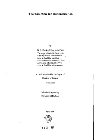 Tool selection and rationalisation