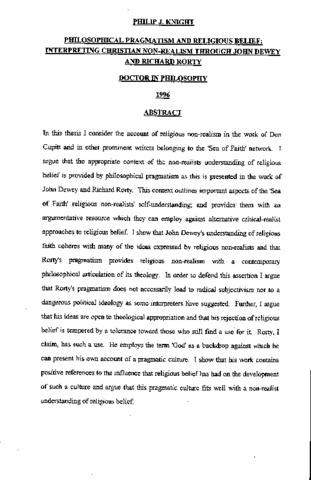 Philosophical pragmatism and religious belief: interpreting Christian non-realism through john Dewey and Richard Rorty