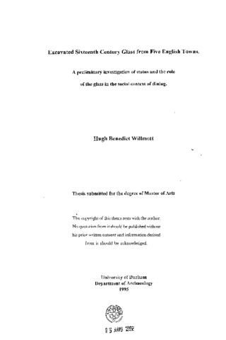 Excavated sixteenth century glass from five English towns: a preliminary investigation of status and the role of the glass in the social context of dining.