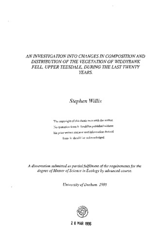 An investigation into changes in composition and distribution of the vegetation of Widdybank Fell, upper Teesdale, during the last twenty years