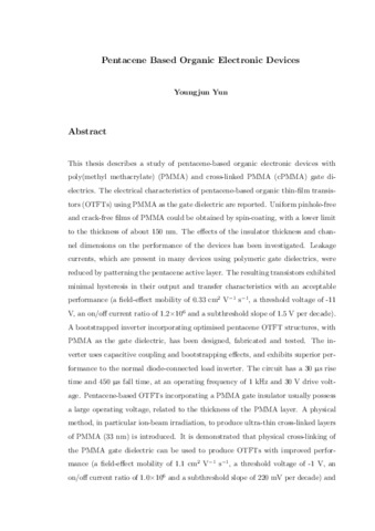 This thesis describes a study of pentacene-based organic electronic devices with poly(methyl methacrylate) (PMMA) and cross-linked PMMA (cPMMA) gate dielectrics. The electrical characteristics of pentacene-based organic thin-film transistors (OTFTs) using PMMA as the gate dielectric are reported. Uniform pinhole-free and crack-free films of PMMA could be obtained by spin-coating, with a lower limit to the thickness of about 150 nm. The effects of the insulator thickness and channel dimensions on the performance of the devices has been investigated. Leakage currents, which are present in many devices using polymeric gate dielectrics, were reduced by patterning the pentacene active layer. The resulting transistors exhibited minimal hysteresis in their output and transfer characteristics with an acceptable performance (a field-effect mobility of 0.33 cm2 V−1 s−1, a threshold voltage of -11 V, an on/off current ratio of 1.2X106 and a subthreshold slope of 1.5 V per decade). A bootstrapped inverter incorporating optimised pentacene OTFT structures, with PMMA as the gate dielectric, has been designed, fabricated and tested. The inverter uses capacitive coupling and bootstrapping effects, and exhibits superior performance to the normal diode-connected load inverter. The circuit has a 30 us rise time and 450 us fall time, at an operating frequency of 1 kHz and 30 V drive voltage. Pentacene-based OTFTs incorporating a PMMA gate insulator usually possess a large operating voltage, related to the thickness of the PMMA layer. A physical method, in particular ion-beam irradiation, to produce ultra-thin cross-linked layers of PMMA (33 nm) is introduced. It is demonstrated that physical cross-linking of the PMMA gate dielectric can be used to produce OTFTs with improved performance (a field-effect mobility of 1.1 cm2 V−1 s−1, a threshold voltage of -1 V, an on/off current ratio of 1.0X106 and a subthreshold slope of 220 mV per decade) and operating at low voltages, < 10 V. Low voltage memory transistors based on various charge storage elements (gold nanoparticles, ultra-thin aluminium and silver films) with cPMMA as the gate dielectric, have been investigated. Solution-processed OTFTs based on 6,13-bis(triisopropylsilylethynyl) (TIPS) pentacene with PMMA and cPMMA as the gate dielectric were also studied.