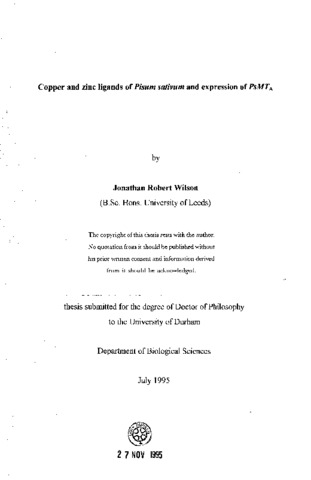 Copper and zinc ligands of pisum sativum and expression of psMT(_A)
