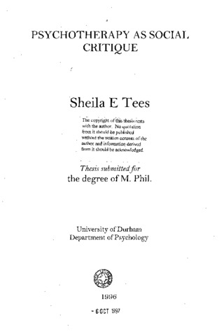 Several commentators on psychotherapy have suggested that certain features of contemporary society are creating additional psychological problems for people. They argue that traditional individualistic approaches to psychotherapy cannot account theoretically for the social dysfunctions which could be responsible for psychological problems. The focus of such dysfunctions are de-ethicalised human relations either due to social institutional constraints (forms of macro-conduct) or the uncoupling of micro-conduct (person to person activities) from macro-conduct. I examine recent approaches to psychotherapy to find out whether they consider contemporary features of social existence in their accounts. My aim is to provide an account of psychotherapy which considers personal and social existence co-relative to each other. Only by theoretically establishing such a relation can there be an adequate analysis of persons interacting with each other or their social practices. I propose three modalities, personhood, micro-conduct and macro-conduct for my account of psychotherapy. Each of these can influence the other. My approach to psychotherapy as social critique is organised around the principle of social and moral values which includes both persons as evaluators and the values pertaining to social practices in the social environment. I contend that such evaluators are moral agents with both species-related and individual attributes of intentions and powers and also what I term, knowledge-ability. I suggest that the process of evaluation is a skilled process involving feedback between persons and their practices as a result of which persons can regulate and modify their social practices. This skilled process establishes also the regulatory methodological features of psychotherapy practice which can give rise to psychotherapeutic betterment. I have achieved an account of social psychotherapy that is relational and developmental and in this respect allows for psychotherapeutic betterment. The account which I offer is not a normative account but is one which is available for empirical enquiry.