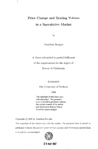 This thesis is concerned with the daily dynamics of price change and trading volume in a speculative market. The first part examines the news-driven model of Tauchen and Pitts (1983), and develops this model to the point where it is directly testable. In order to implement the test a new method for creating a price index from futures contracts is proposed. It is found that news effects can explain some but not all of the structure of the daily price/volume relationship. An alternative explanation is presented, in which the model of Tauchen and Pitts is generalized in a non-linear fashion. In the second part of the thesis, the presence of a small amount of positive autocorrelation in daily returns is exploited through the development of a timing rule. This timing rule applies to investors who are committed to a purchase but flexible about the precise timing. The computation of the timing rule is discussed in detail. In practice it is found that this timing rule is unlikely to generate sufficiently large returns to be of interest to investors in a typical stock market, supporting the hypothesis of market efficiency. However, the incorporation of extra information regarding price/volume dynamics, as suggested by the analysis of Part I, might lead to a much improved rule.