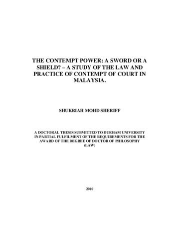 THE CONTEMPT POWER: A SWORD OR A SHIELD? – A STUDY OF THE LAW AND PRACTICE OF CONTEMPT OF COURT IN MALAYSIA.